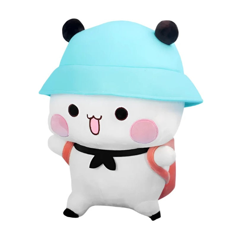 Este peluche de aspecto alegre y simpático lleva un gorrito celeste que le da un toque juguetón. Con su sonrisa amplia y mejillas rosadas, transmite felicidad y ternura, invitando a ser estrechado. Sus orejas pequeñas en contraste con el cuerpo blanco resaltan la inspiración panda del diseño. Perfecto para sumar alegrí­a a cualquier colección de peluches o como acompañante fiel para compartir momentos dulces.